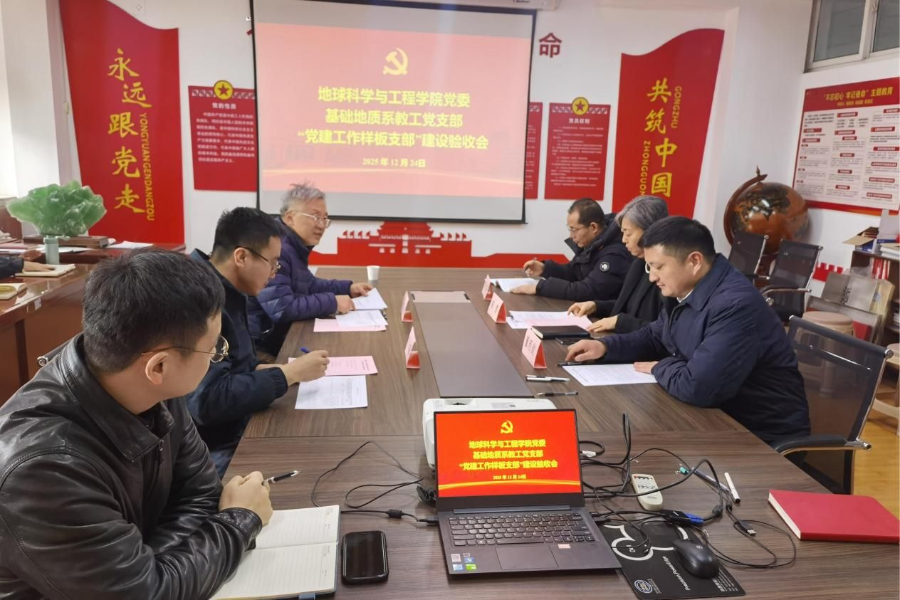 地球科学与工程学院党委基础地质系教工党支部“样板支部”建设工作圆满完成交叉评... 12月24日上午,根据学校党委关于样板支部验收工作的统一部署,石油工程学院党委书记司马文龙带队组成验收组,对地球科学与工程学院党委基础地质系教工党支部“样板支部”培育创建工作进行了交叉评估验收。验...