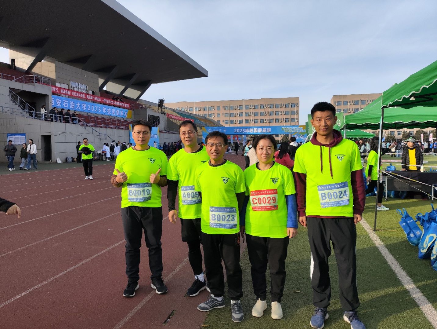 西安石油大学2025年校园健康跑于11月19日下午16时30分在鄠邑校区东体育场田径场发枪。本次欢乐跑项目比赛距离约5000米,路线贯穿鄠邑校区主要教学区与景观区,旨在鼓励全校师生参与,体验跑步乐趣。全校有19个参赛队伍、共计1200余名师生参与了比赛。地球科学与工程学院教职工赵永刚、吴伟涛、黄俊、赵静、李家春参加了此次比赛,并顺利完赛。