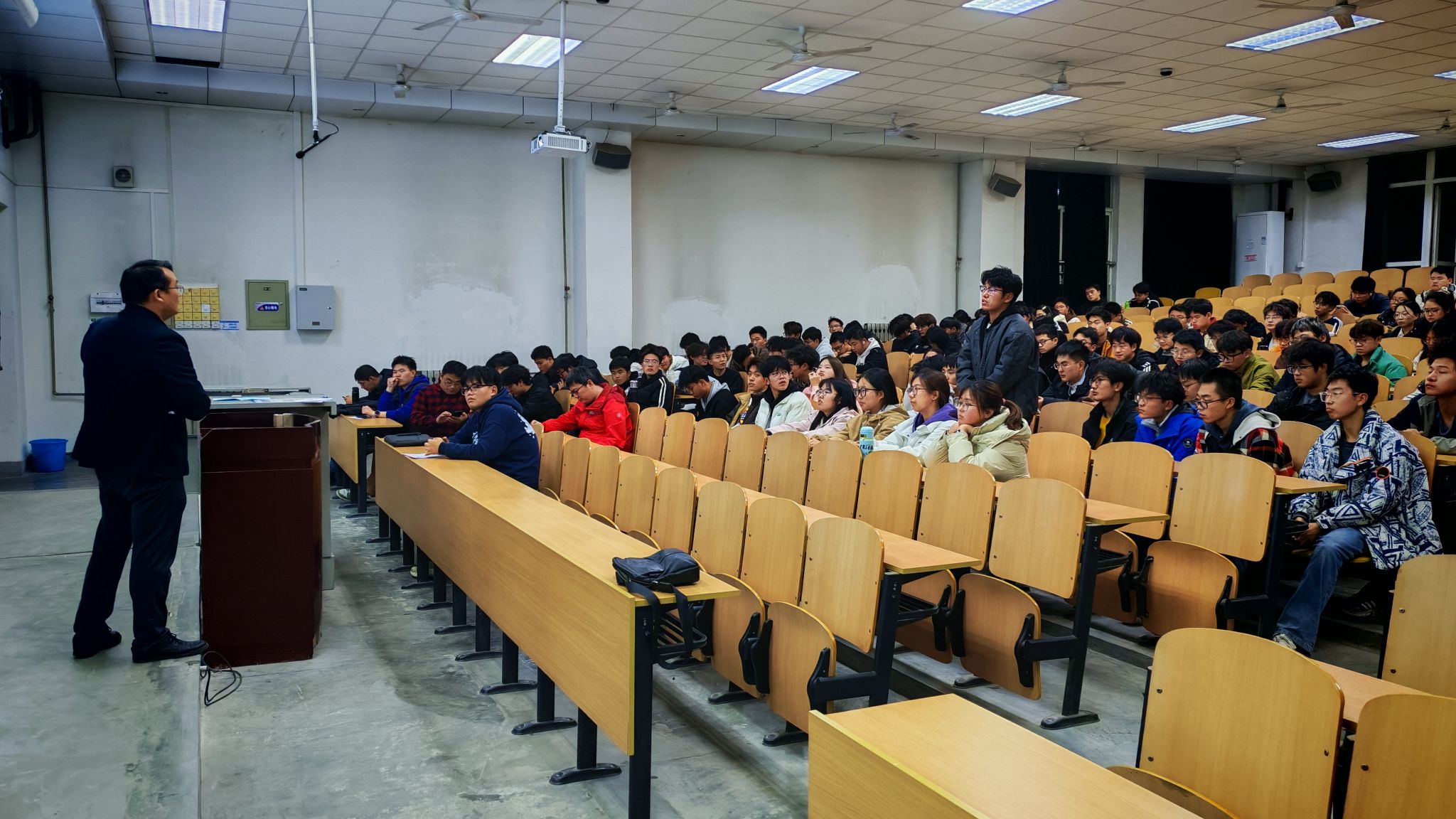 为积极回应学生关切,引领学生专业学习,11月27日晚,地球科学与工程学院邀请中国科学院青海盐湖研究所贺茂勇研究员为学院学生作学业引领专题讲座。学院院长宋立军主持讲座,学院党委副书记董丙剑、基础地质系副主任李海、学院学工办主任姜楠和学院2025级本科生参加。