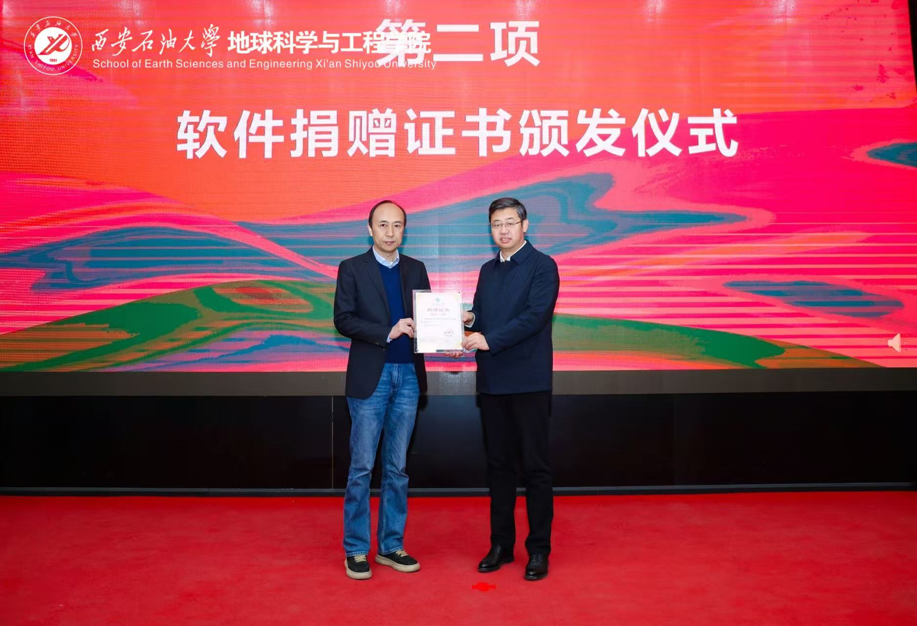 共建平台,驱动产教融合走深走实。在前期充分沟通及校友工作与合作交流处的协调推动下,学院与西安石文软件有限公司已完成战略合作协议签署。会上,王进富与张小会共同为“西安石油大学—石文能源联合研究院”揭牌。该研究院的成立,是学院探索“院为实体”改革、打造产学研用一体化协同创新平台的关键一步。