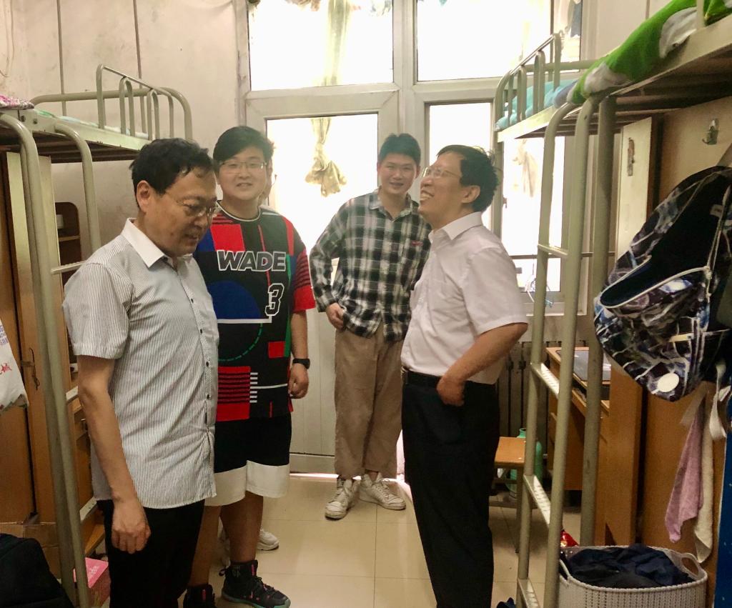 2021年6月25日下午,地球科学与工程学院党委书记马行天、院长谭成仟、副书记王莹深入毕业生宿舍看望2021届毕业生,学工干部陪同前往。