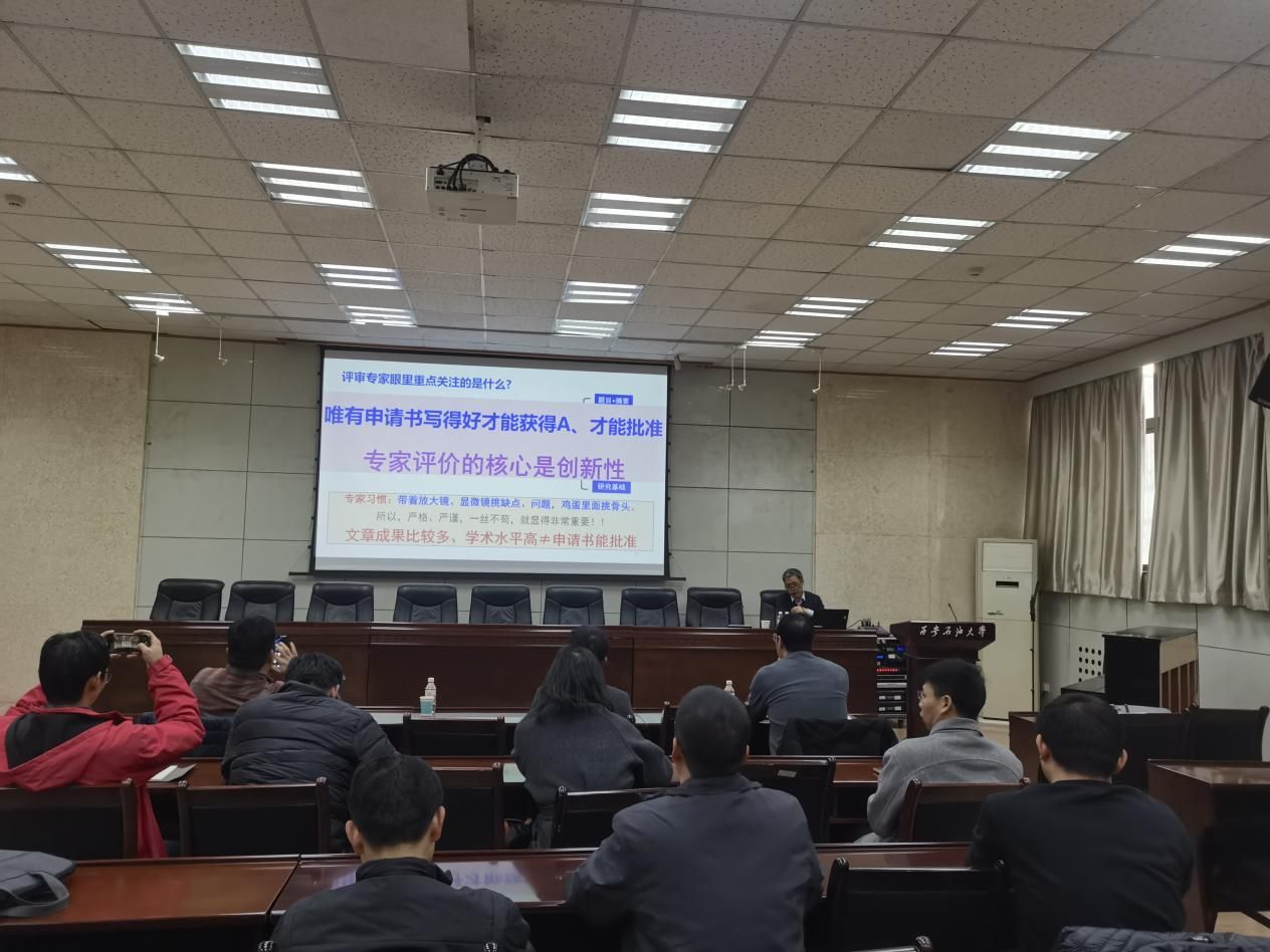 地球科学与工程学院邀请王文龙研究员开展国家基金专题辅导活动 为把握2026年国家基金申报新导向,提升学院教师申请书撰写质量,1月25日,地球科学与工程学院邀请校外专家王文龙研究员开展专题辅导活动,院长宋立军、副院长曹静杰及申报基金的教师参加了此次活动。 -